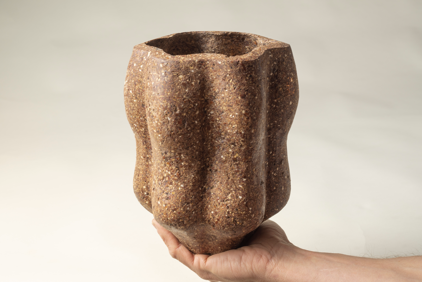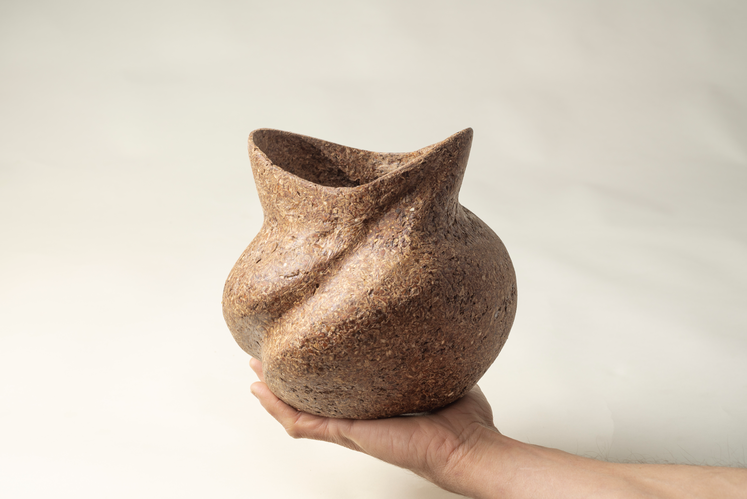 A través de la creatividad y la ciencia, damos nueva vida a subproductos como posos de café, cáscaras de naranja y de castañas. Estos materiales se transforman en biocerámicas o biotextiles que, al final de su ciclo de vida, pueden reutilizarse para crear nuevos productos o degradarse de forma natural y volver al medio ambiente, como una hoja en el suelo del bosque.