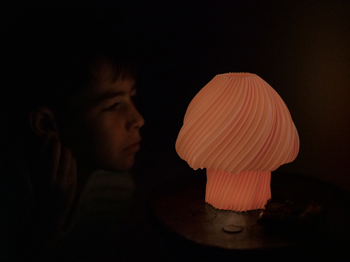 La lámpara Mycena ha sido diseñada con una luz acogedora y mágica para las habitaciones infantiles. Inspirada en la bioluminiscencia de los hongos Mycena, su pantalla luminiscente continúa brillando suavemente después de que se apaga la luz, proporcionando a las niñas y niños una agradable compañía en la oscuridad.
